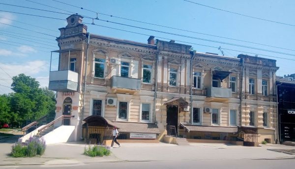 Примечания: а) искажения: фасад окрашен; заменены балконы; б) сохранность ажурного навеса над входом и ограждения лестницы;