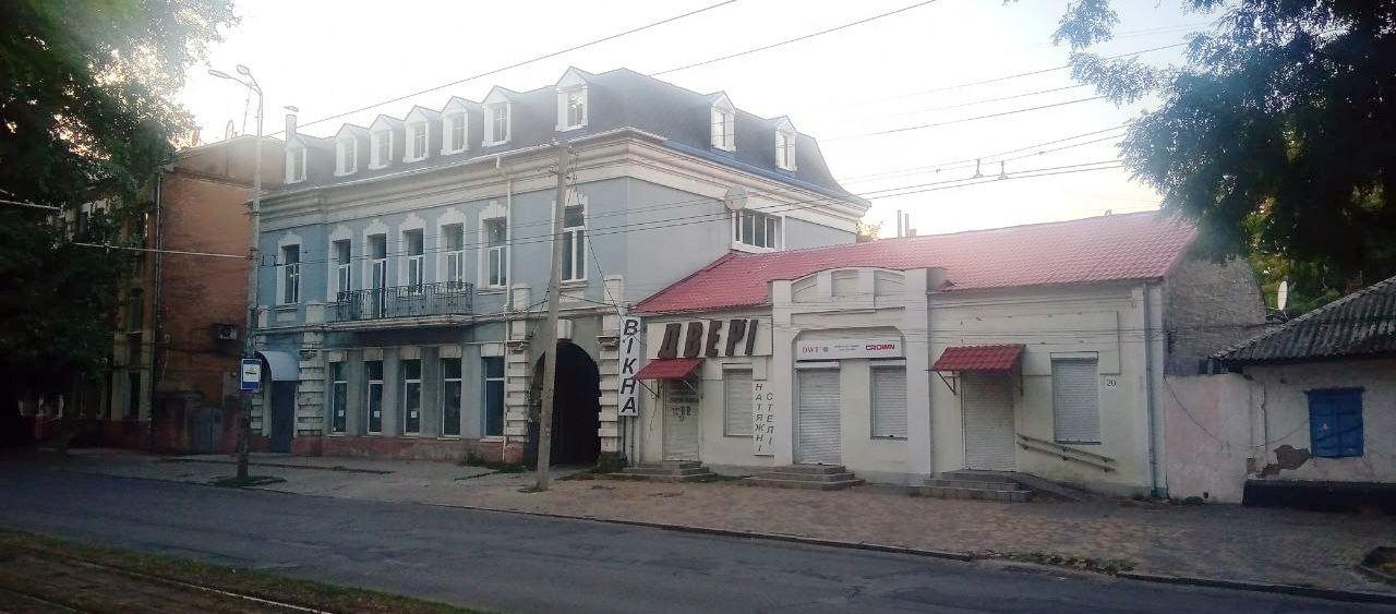 Примечания: искажения: фасад окрашен; заменены балконы; утрачена капитель пилястры у проезда; снесена часть второго этажа с эркером над проездом;